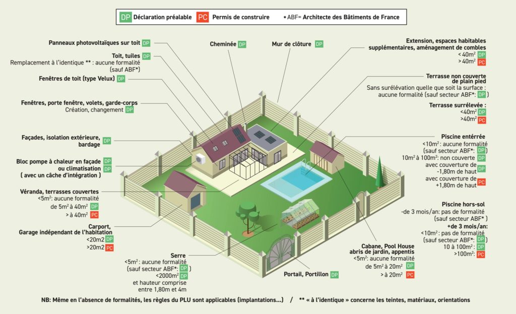 La plupart des travaux ou aménagements : édification de clôtures, d’abri de jardin… nécessitent une déclaration et/ou une autorisation préalable.